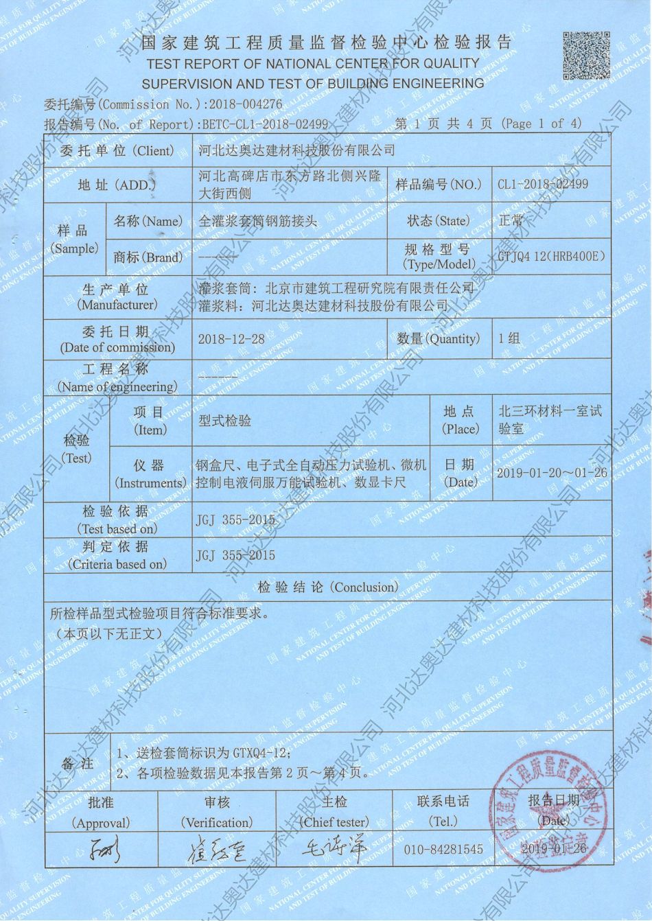 北京建筑工程研究院12mm套筒匹配報(bào)告
