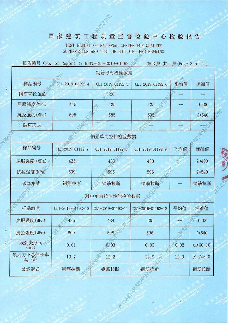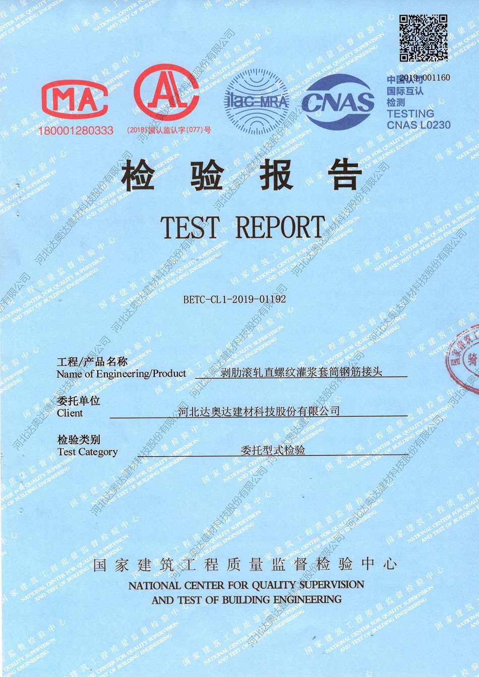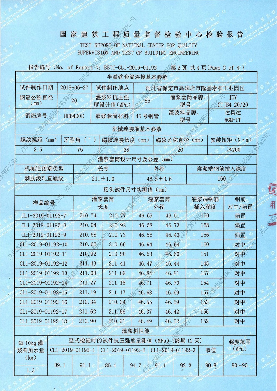 北京建筑工程研究院半灌漿套筒鋼筋接頭20MM匹配報告