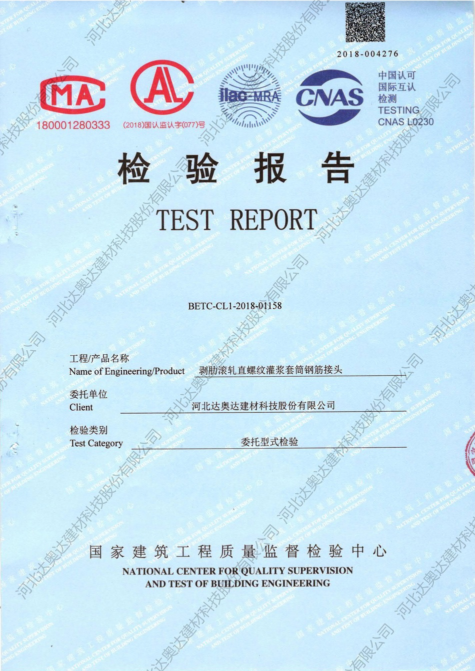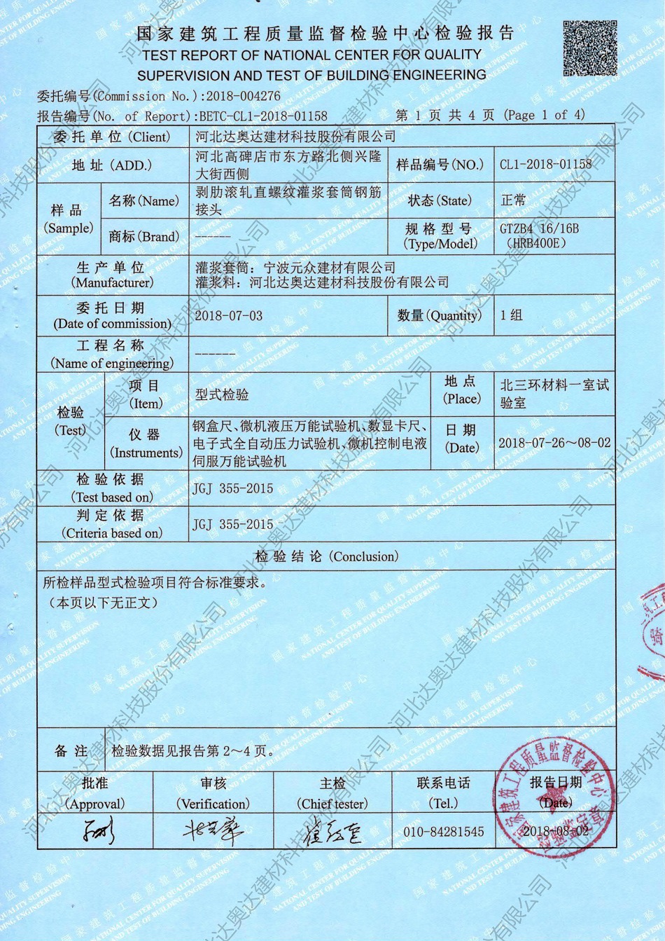 寧波元眾半灌漿套筒鋼筋接頭16MM匹配報告