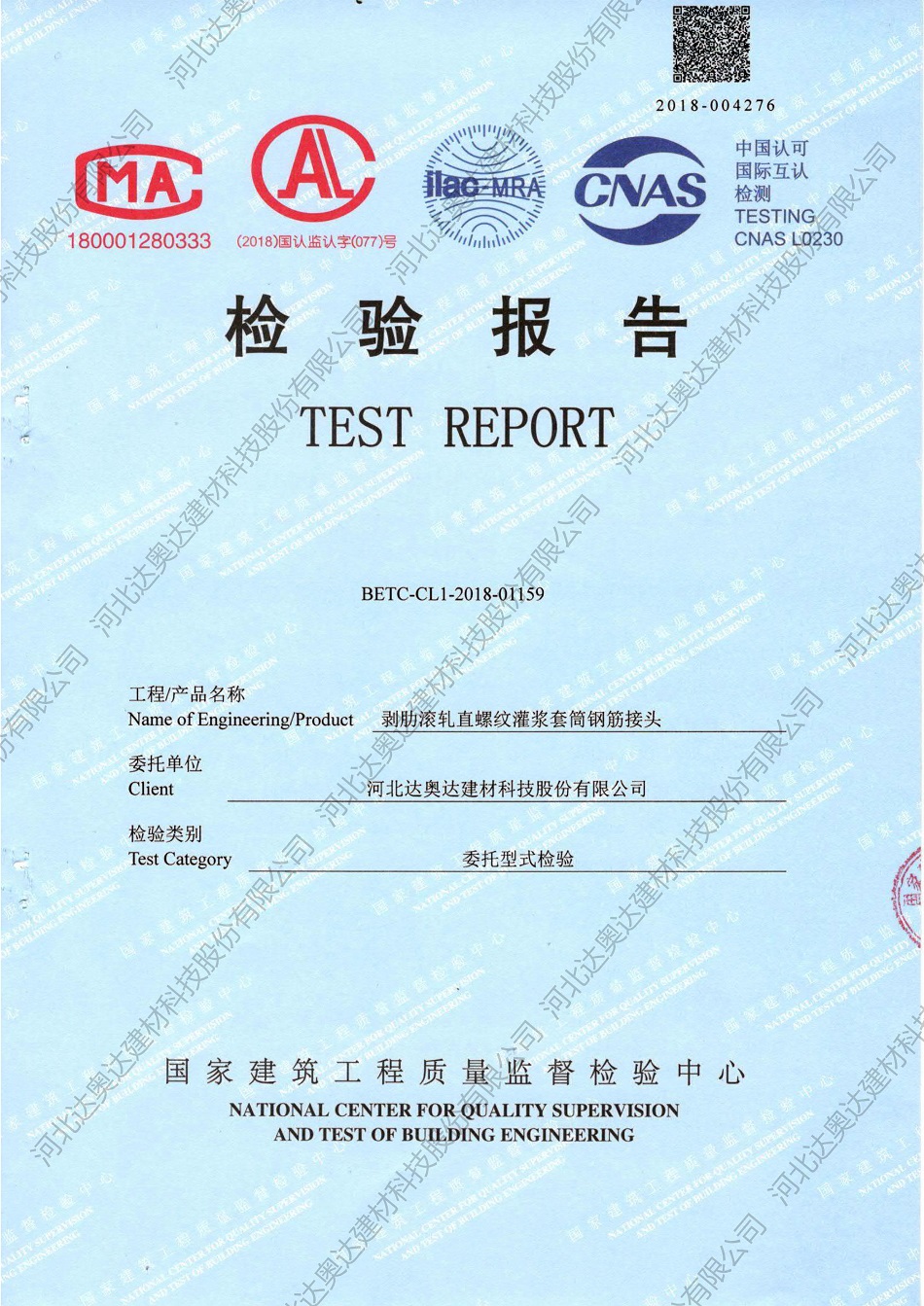 寧波元眾半灌漿套筒鋼筋接頭18MM匹配報告