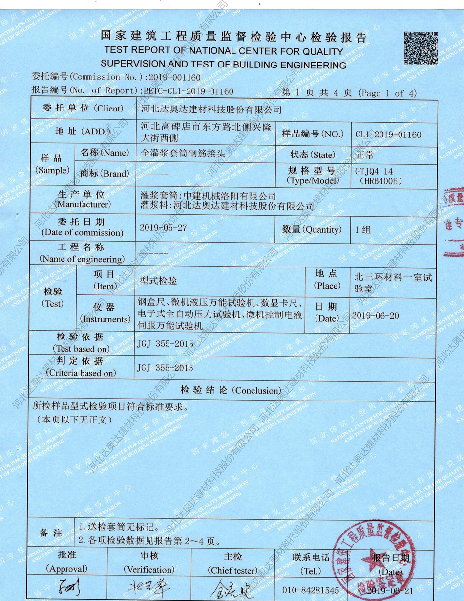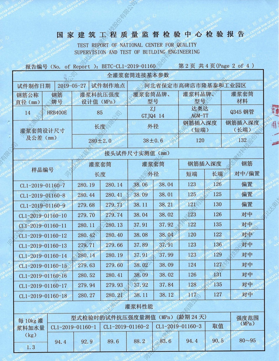 中建機(jī)械全灌漿套筒鋼筋接頭14MM匹配報(bào)告