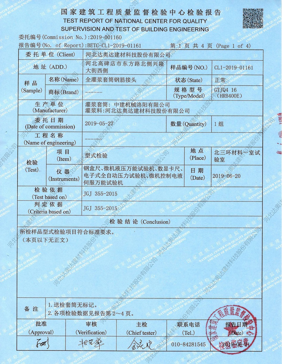 中建機械全灌漿套筒鋼筋接頭16MM匹配報告