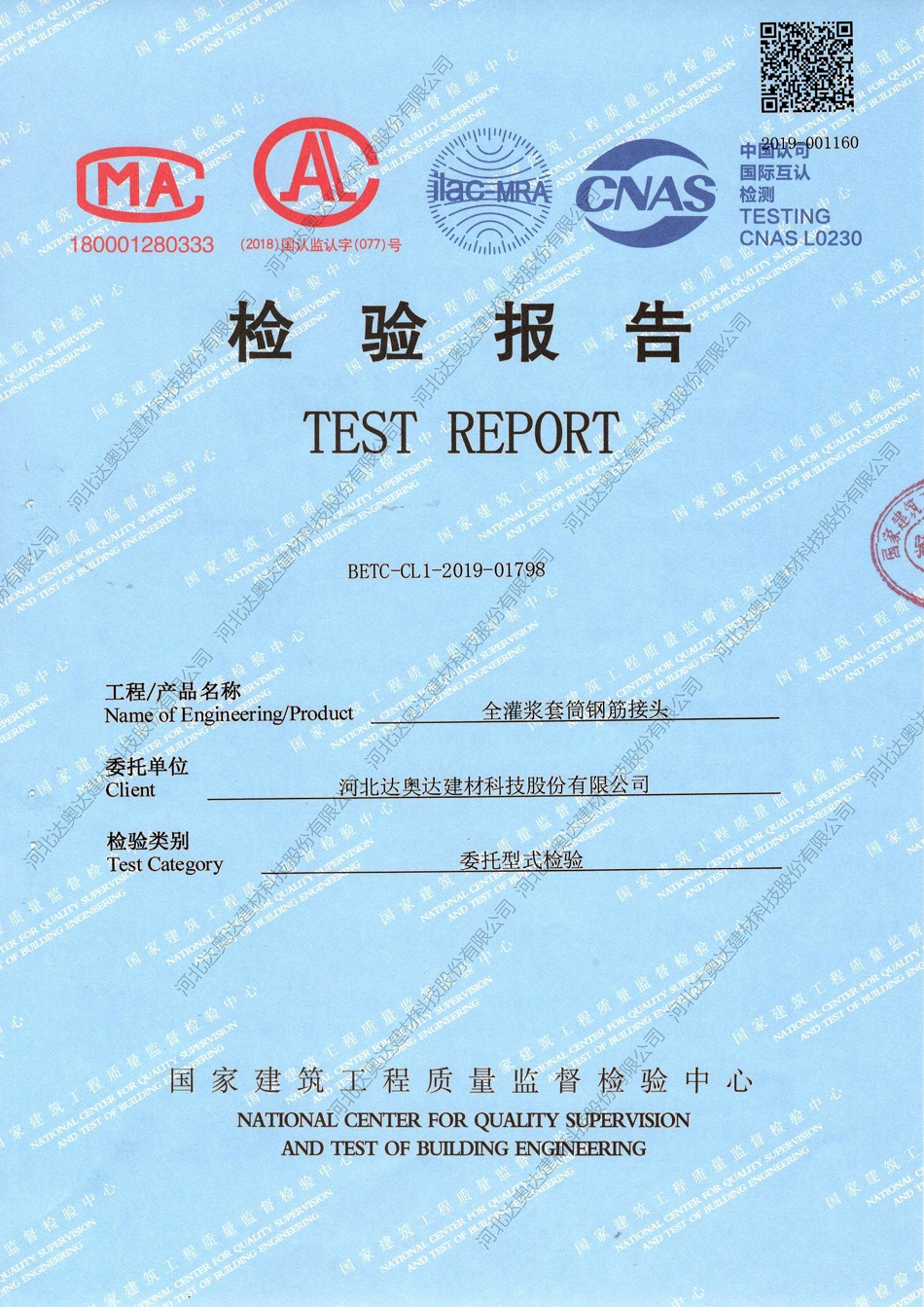 中建機(jī)械全灌漿套筒鋼筋接頭20MM匹配報(bào)告