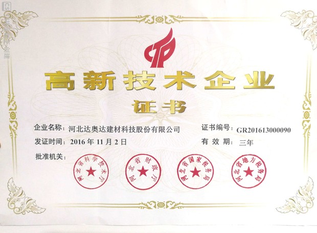 河北達(dá)奧達(dá)建材科技股份有限公司創(chuàng)立于2010年,是專業(yè)從事新型材料和工程材料的研發(fā)、開發(fā)、生產(chǎn)銷售及技術(shù)服務(wù)于一體的高新技術(shù)企業(yè)。